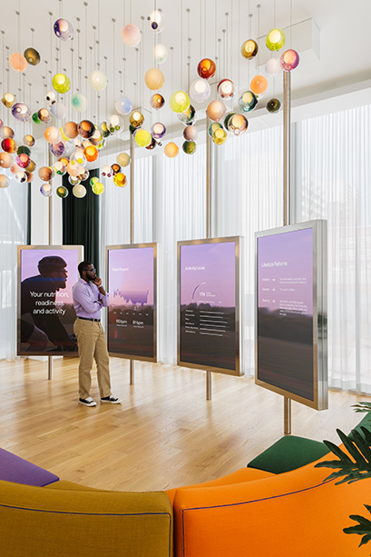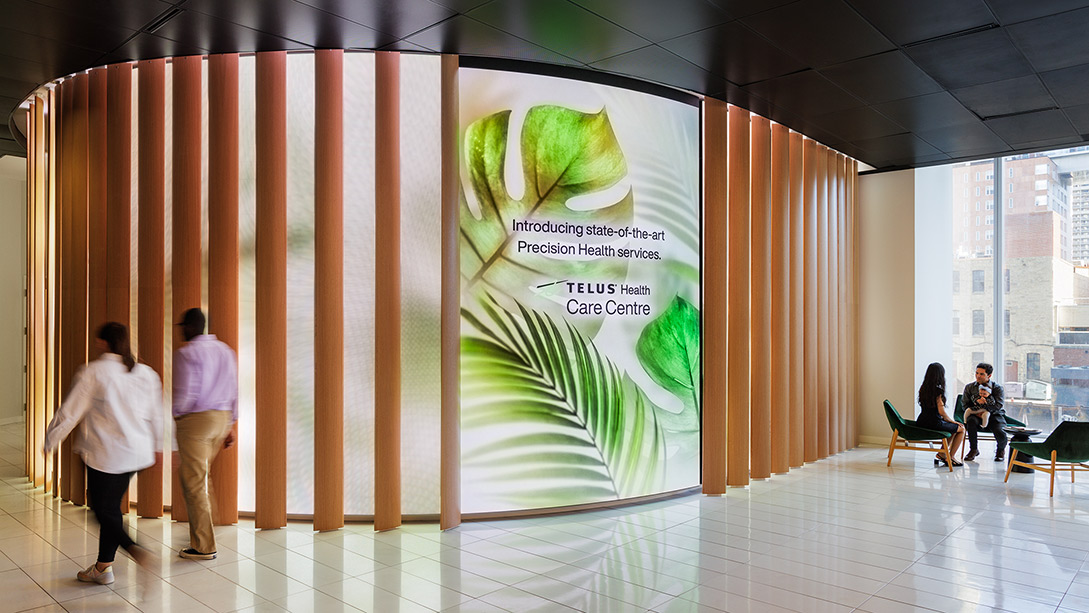 The TELUS Health Care Centre - Precision Health shines a light on what’s possible when health, data and design come together in a meaningful, relatable, and seamless experience. Digital and visual activations enable purposeful experiences throughout the Precision Clinic by aggregating data, projecting calming visuals, and communicating information clearly, in a more understandable and digestible way for long-term action. The connected digital and physical ecosystem embodies the future of hospitality-driven, personalized care.